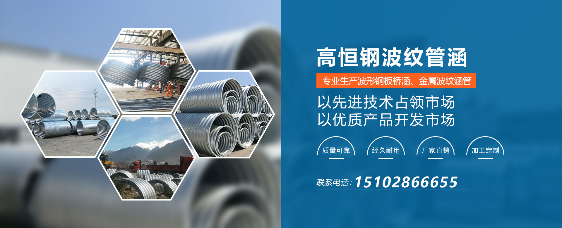 质量高标准,服务恒久远,我们将以更高的目标、更好的服务、更优的产品致力于金属波纹涵管制造业